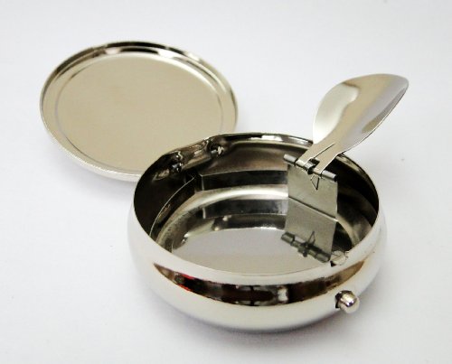 Portable ashtray; Steel with chrome plating; Easy to Carry, Easy to Use, Easy to Clean; Measures 2 inches diameter; 0.75 inches height